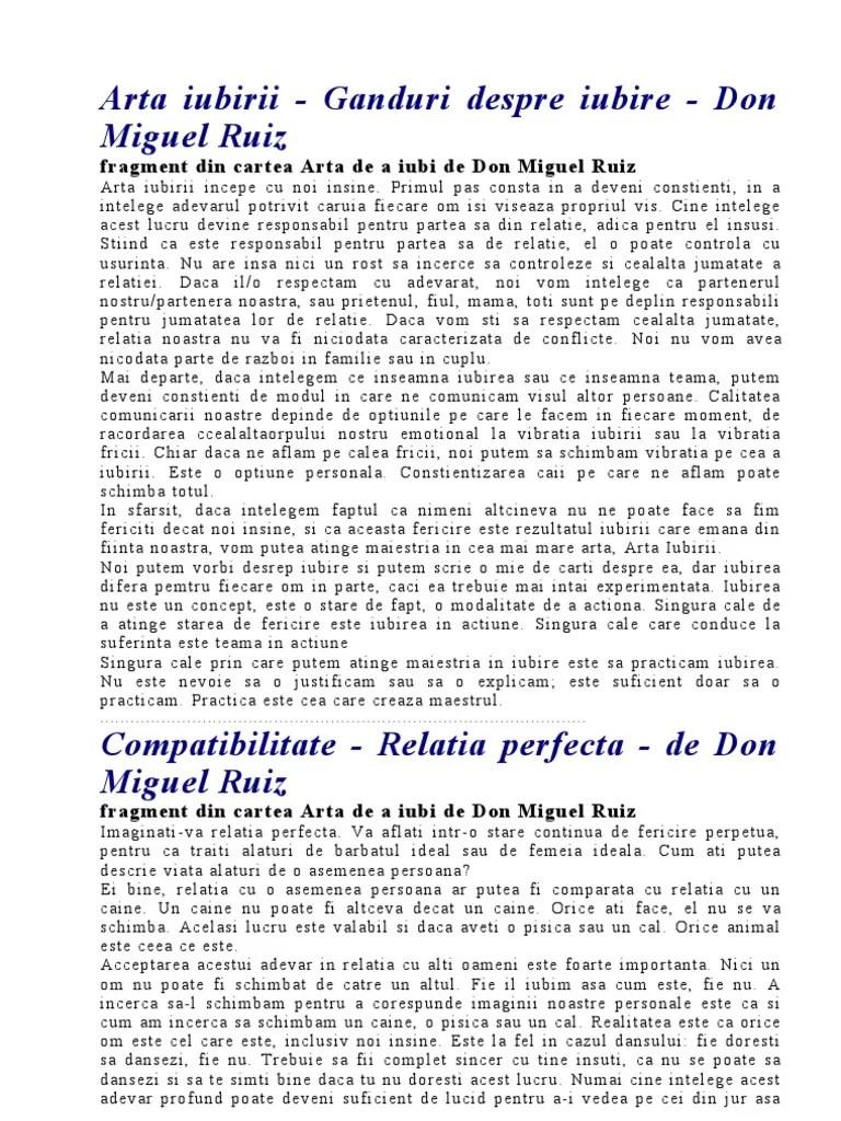 A short summary of this paper. Arta de a te iubi. Full pdf package download full pdf package. Don miguel ruiz arta de a iubi. Relatia ta incepe cu tine.. Arta de a te iubi.