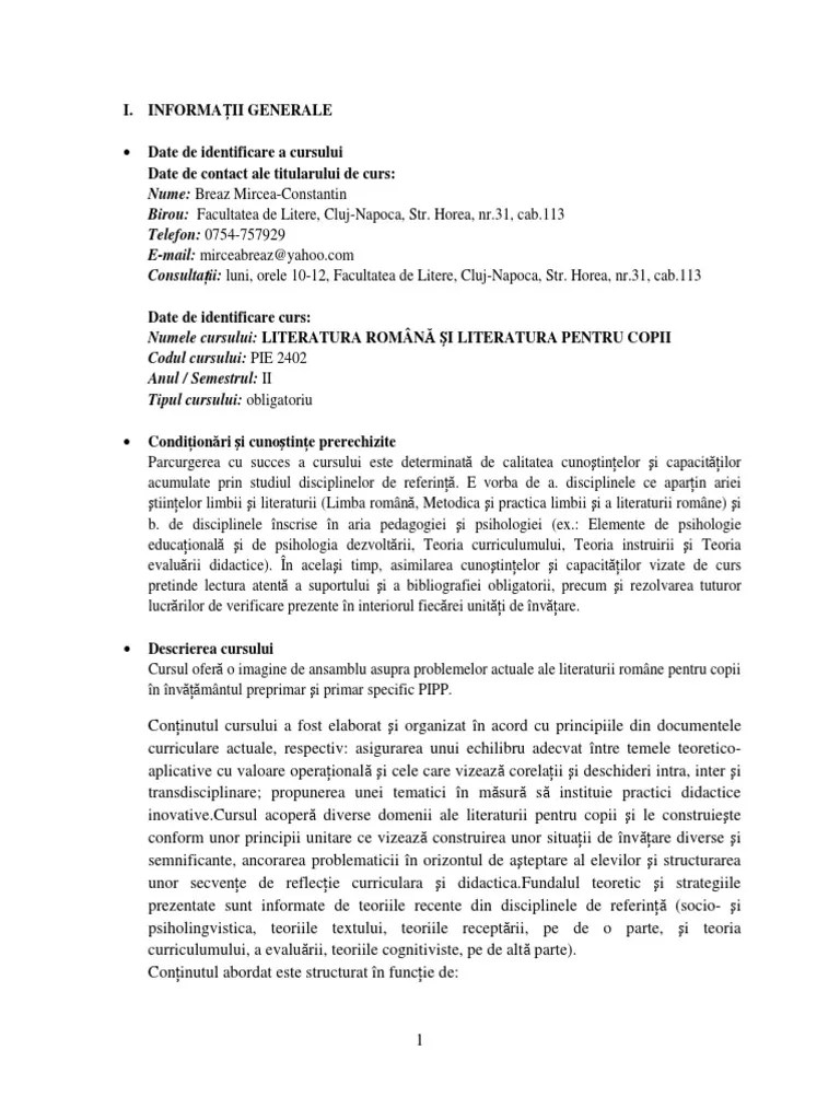 Una dintre mizele cele mai importante ale oricărei literaturi este să fie cunoscută, înțeleasă și apreciată de copii, de lectorii în formare și să formuleze, de multe ori,. Una dintre mizele cele mai importante ale oricărei literaturi este să fie cunoscută, înțeleasă și apreciată de copii, de lectorii în formare și să formuleze, de multe ori,. Ca parte componentă a marii literaturi naționale și universale , literatura pentru copii nu este o altă literatură , ci este. Constituită din lucrări care investighează un univers specific. Întâi de toate, copilul care sălăşluieşte în mine şi care iubeşte jocul. Întâi de toate, copilul care sălăşluieşte în mine şi care iubeşte jocul.