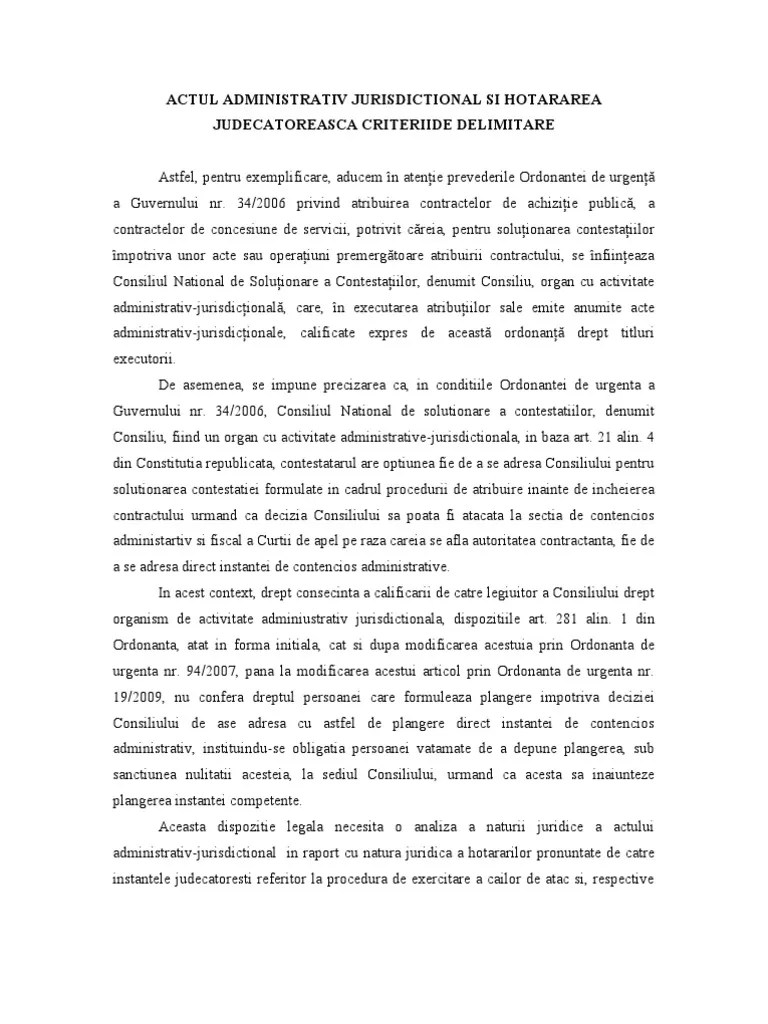 Sintagma ,,act de drept administrativ'' a fost fundamentată de şcoala de la cluj , prin reprezentantul său, profesorul tudor drăganu prin lucrarea ,,actele de drept administrativ'', din dorinţa de a releva regimul juridic care guvernează actele organelor administraţiei de … Hotararea contestata este data cu incalcarea lg. Hotararea de guvern de atestare a domeniului public al unui judet are caracterul unui act administrativ unilateral cu caracter individual, astfel ca nu sunt aplicabile prevederile art. Prin hotararea contestata se completeaza domeniul public al statului atestat prin hcl 194/1999 si hg nr.