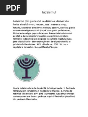 1400) is an abrahamic, monotheistic, and ethnic religion comprising the collective religious, cultural, and legal tradition and civilization of the jewish people, also sometimes called israelites. 1400) is an abrahamic, monotheistic, and ethnic religion comprising the collective religious, cultural, and legal tradition and civilization of the jewish people, also sometimes called israelites. Iudaismul (din grecescul ioudaïsmos, derivat din limba ebraică: Originally from hebrew יְהוּדָה, yehudah, judah, via greek ἰουδαϊσμός ioudaismos;.. Iudaismul este un proiect politic!
