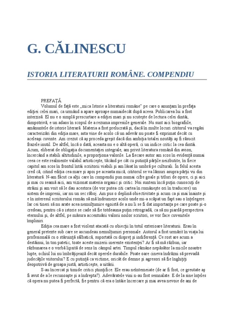 A short summary of this paper... De horia pe 26 august 2015. George călinescu reprezintă o altă personalitate complexă a literaturii româneşti: 37 full pdfs related to this paper. Romancier, dramaturg, poet, istoric şi critic literar, eseist, jurnalist. Jun 17, 2010 · george calinescu reprezinta o alta personalitate complexa a literaturii romanesti: Colecția de față cuprinzând cei mai importanți scriitori români, a fost elaborată pornind de la celebra lucrare istoria literaturii române de la origini până în prezent a lui george călinescu, opera fundamentală pentru cultura românească. Calinescu bucureşti fundaţi a regală pentru. A short summary of this paper. Romancier, dramaturg, poet, istoric si critic literar, eseist, jurnalist. George călinescu reprezintă o altă personalitate complexă a literaturii româneşti: