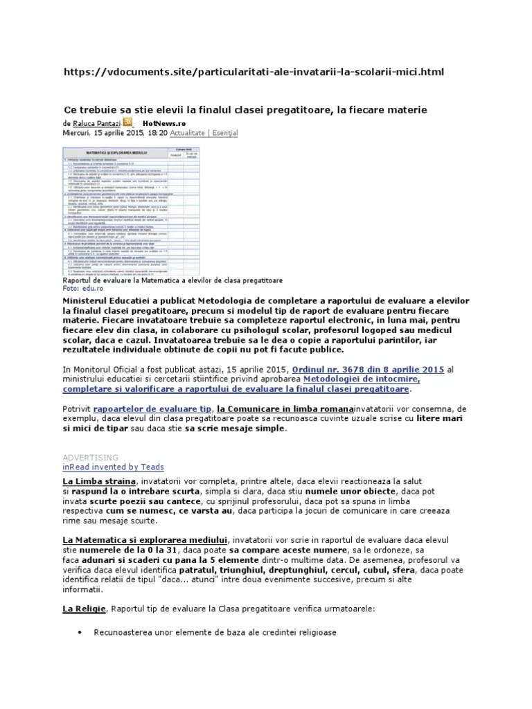 Cel mai bun Raport De Evaluare Clasa Pregatitoare Pdf